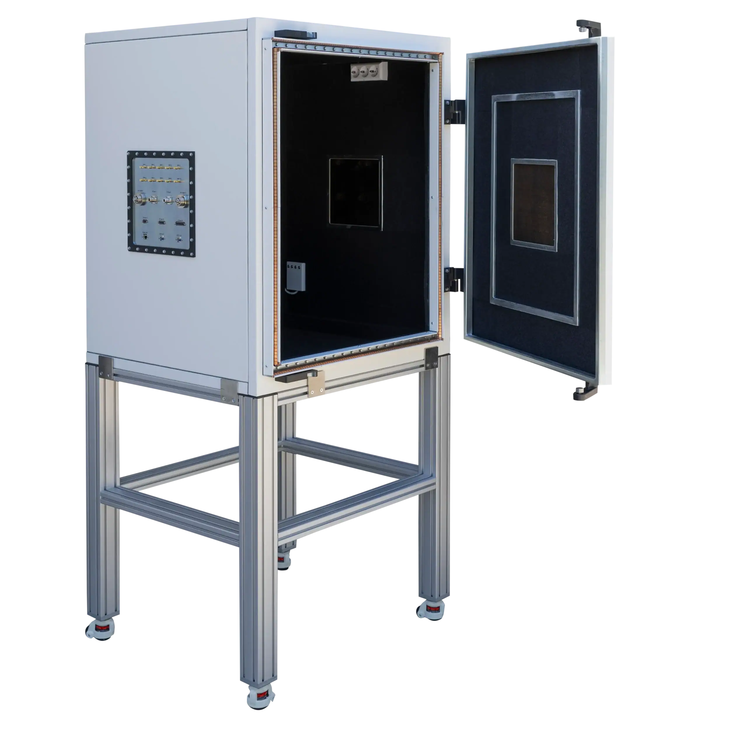 The IG-262E is the preferred choice for defense and automotive sectors requiring absolute signal containment. Its deep internal geometry allows it to accommodate handheld military radios, automotive key fobs, or long PCB assemblies. Built to exceed standard industrial requirements, this unit ensures that high-power transmissions inside the box do not leak out, and external high-power signals do not get in.