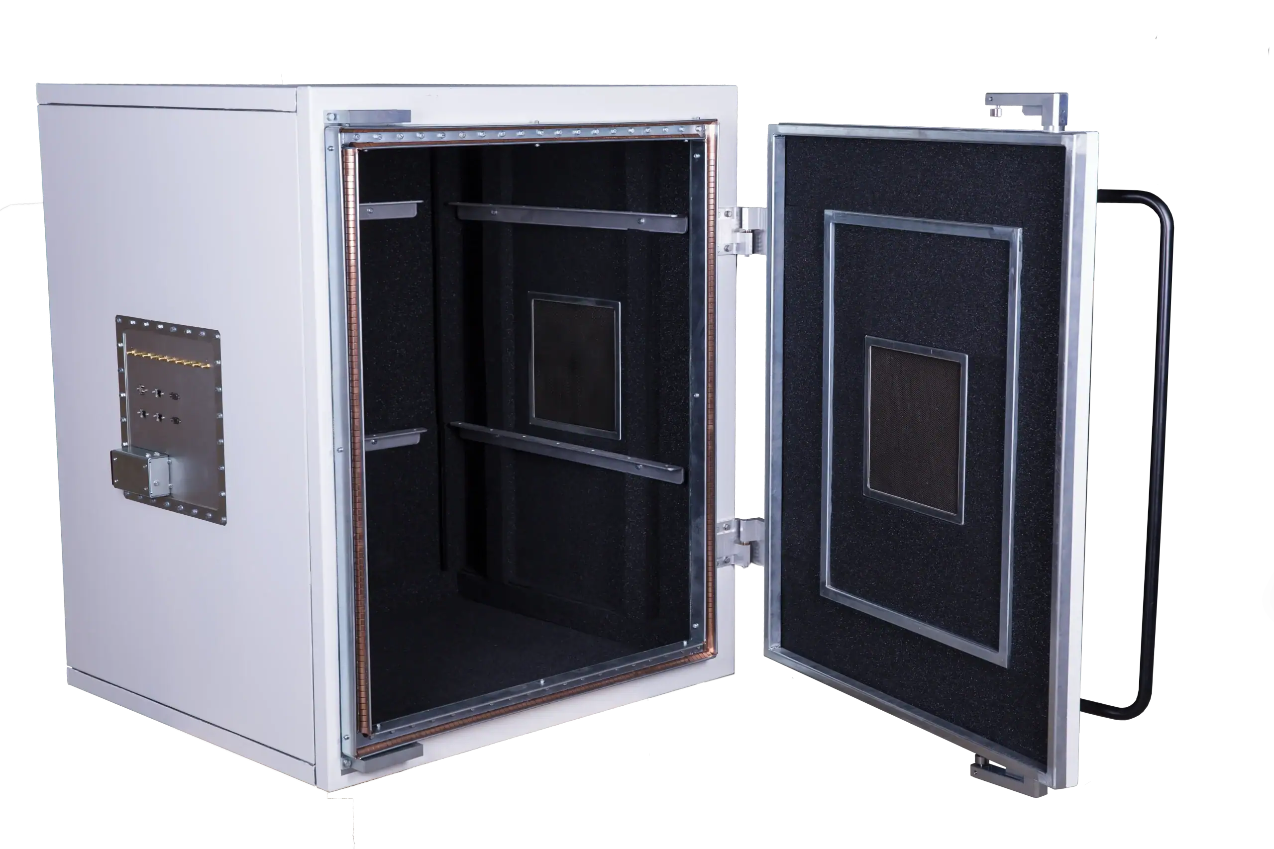• Advanced Gasketing: Uses conductive braiding and gaskets designed for high-frequency blocking.