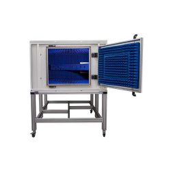 provides high attenuation level. The chamber design for testing any wireless transmission such as: Wi-Fi, Bluetooth, RFID, 3G,4G,5G, WLAN, GPS, WiMAX, Radar and mmW. It may also be used for cell-site testing, RF resistor testing and two-way radio testing or OTA tests.